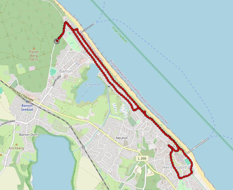 Tatsächlich folgt der rund 40 Meter breite Sandstrand dem Küstenverlauf sogar noch weitere 30 km nordwestwärts bis Peenemünde.