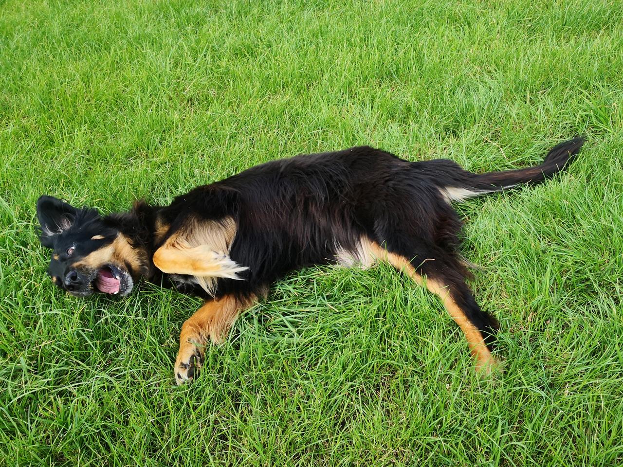 Doxi amüsiert sich auf der Weide