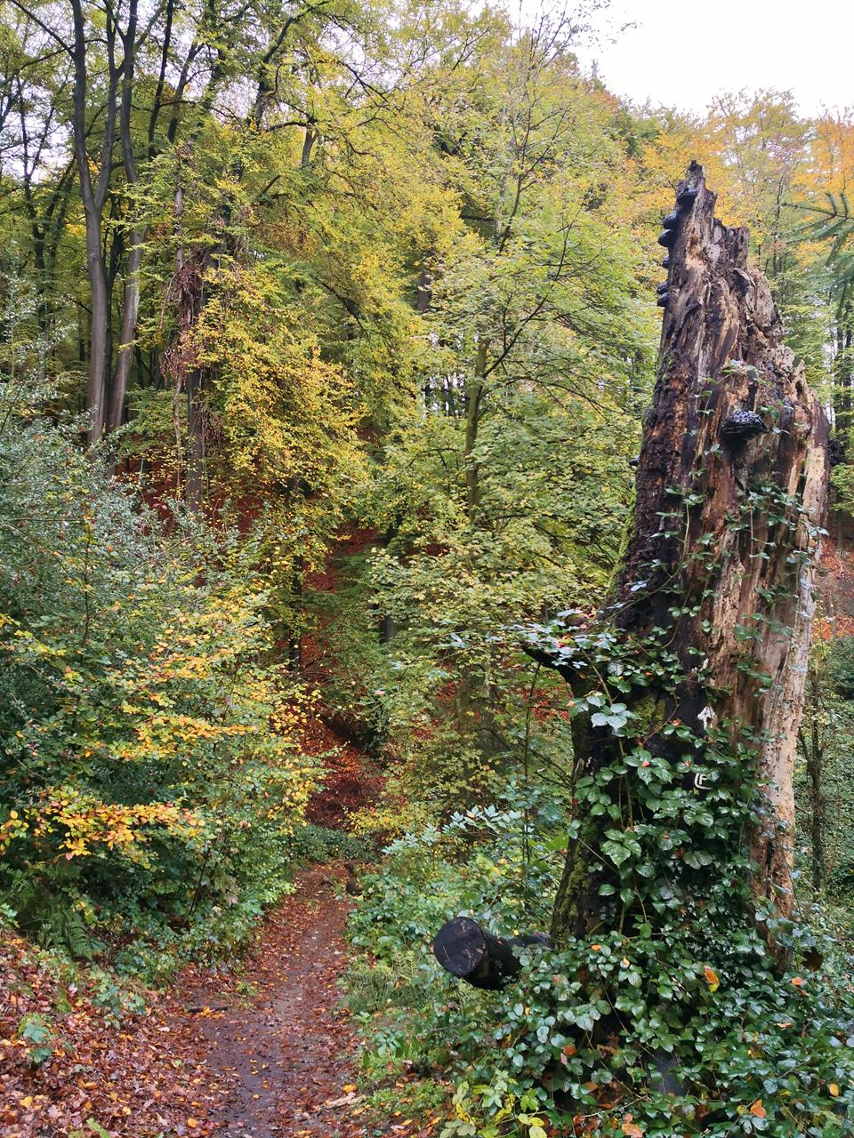 Abstieg durch den Wald zum Schloss Landsberg