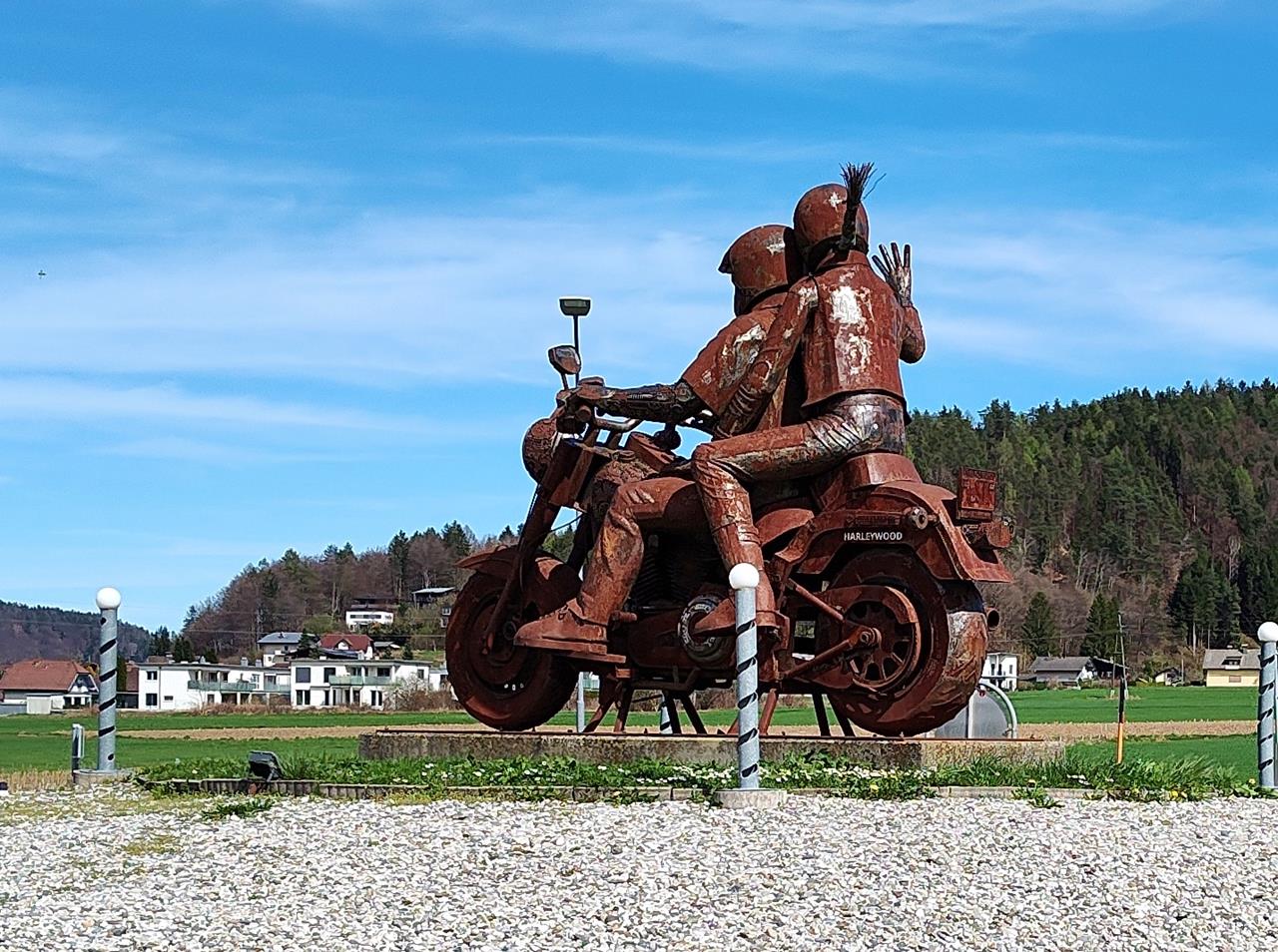 Biker-Huldigung im Kreisverkehr