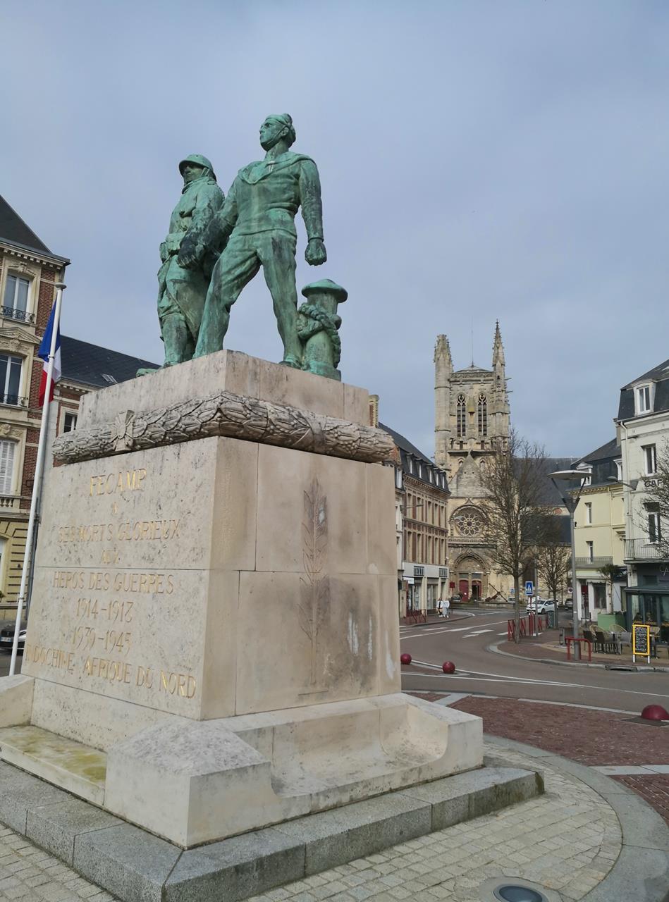 fecamp_feb_2023_054_949x1280 ← Zurück Weiter → Denkmal am Place Charles-de-Gaulle mit Blick auf die Kirche Saint-Etienne