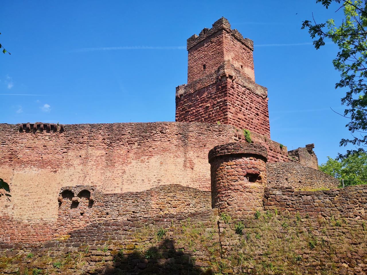 Der mächtige dreigeschossige Bergfried der Burg