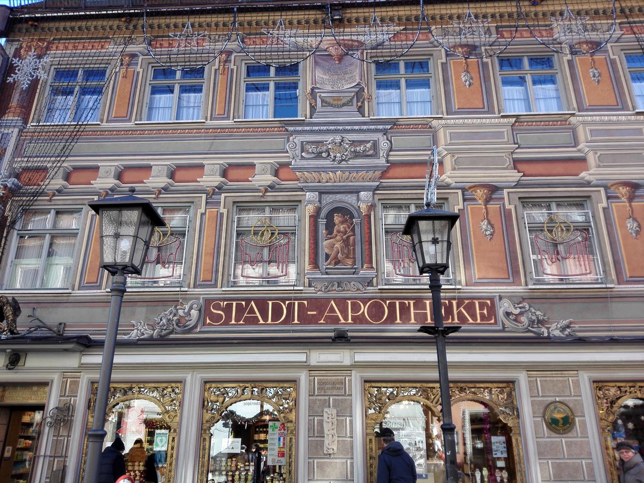 Apotheke mit bunt bemalter Fassade
