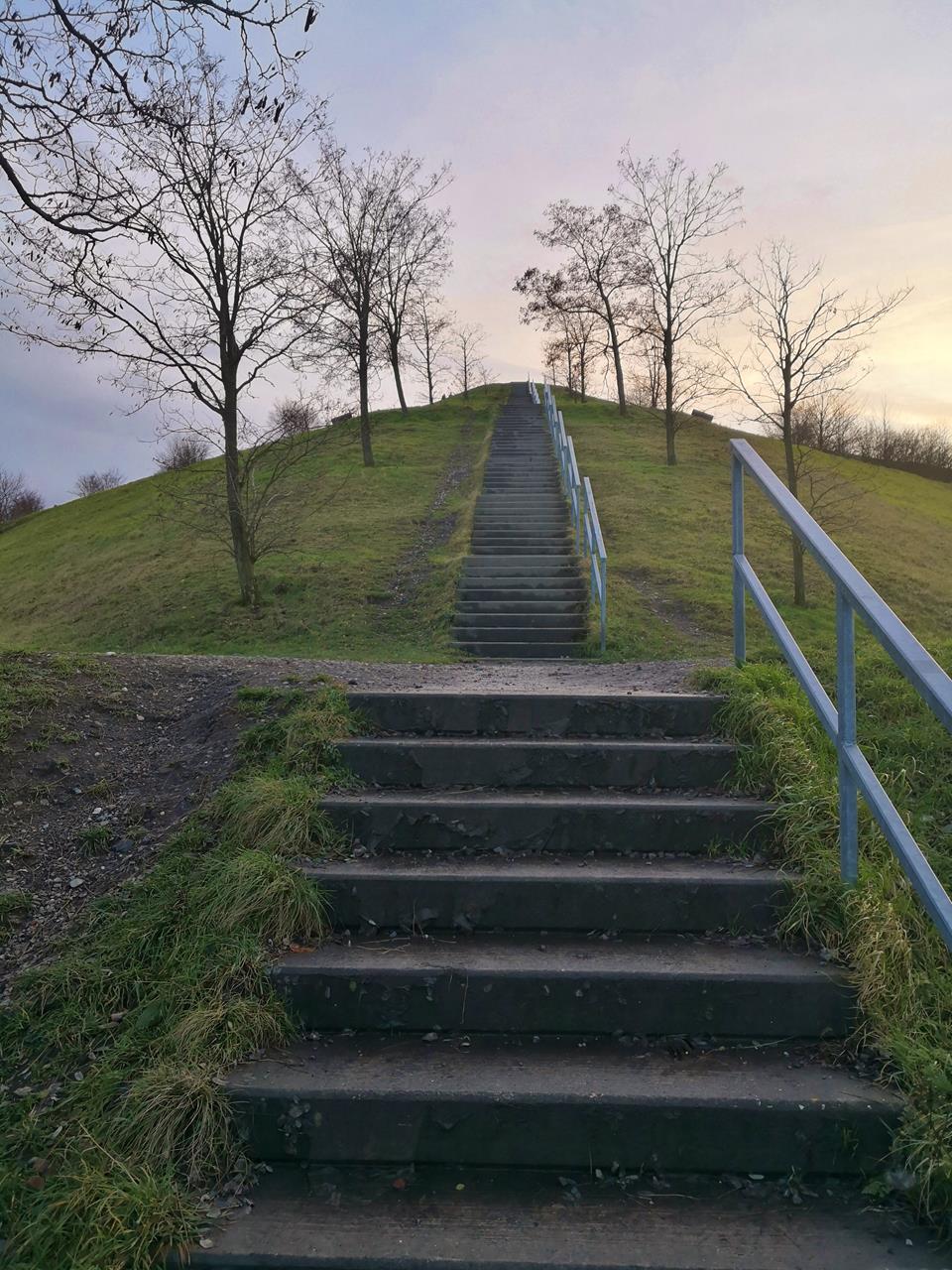 Treppe hinauf zur Spitze der Halde Rungenberg