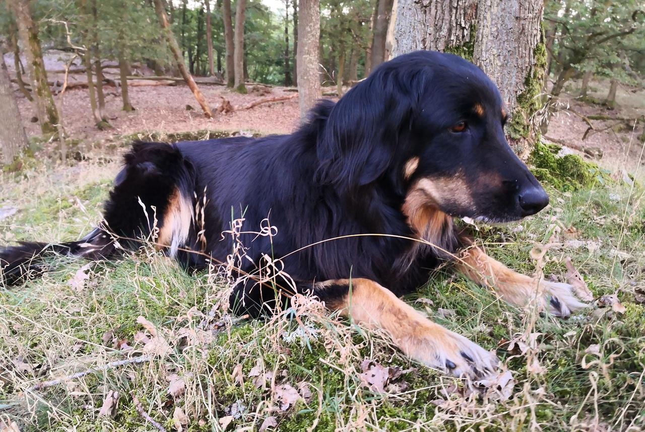 Doxi bei einer Rast im Wald