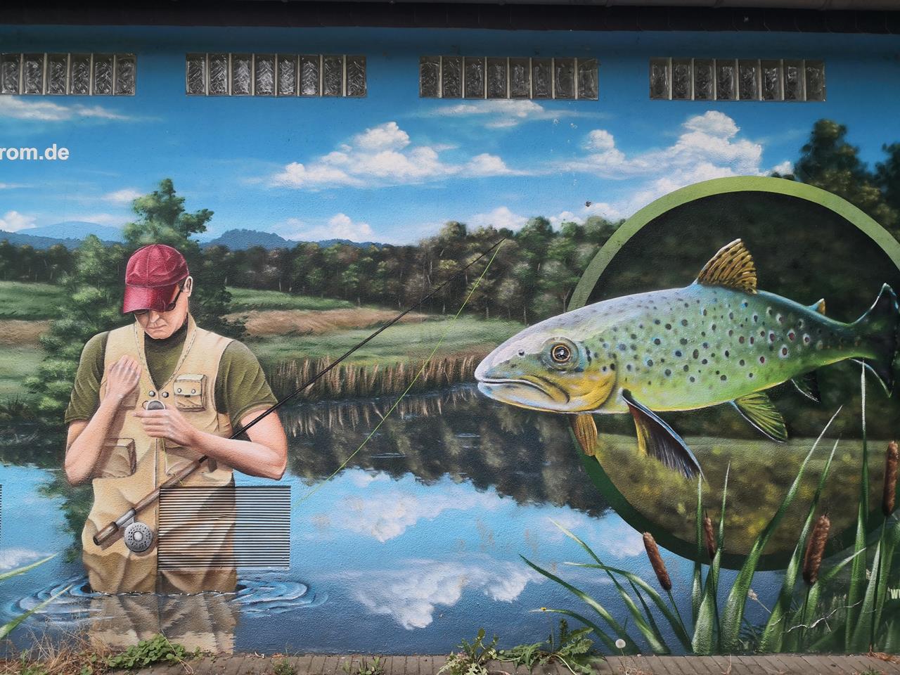 Wandbild auf einem Trafohäuschen an der Urft