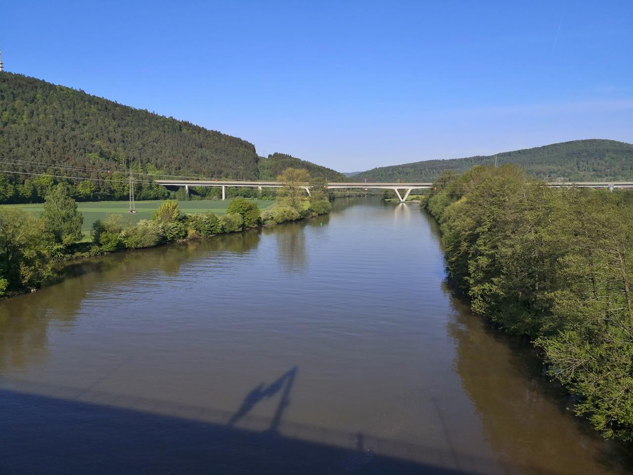 gemuenden_main_mai_2022_210_1280x960 ← Zurück Weiter → Wir überqueren den Main, im Hintegrund die Eisenbahnbrücke der Schnellbahntrasse