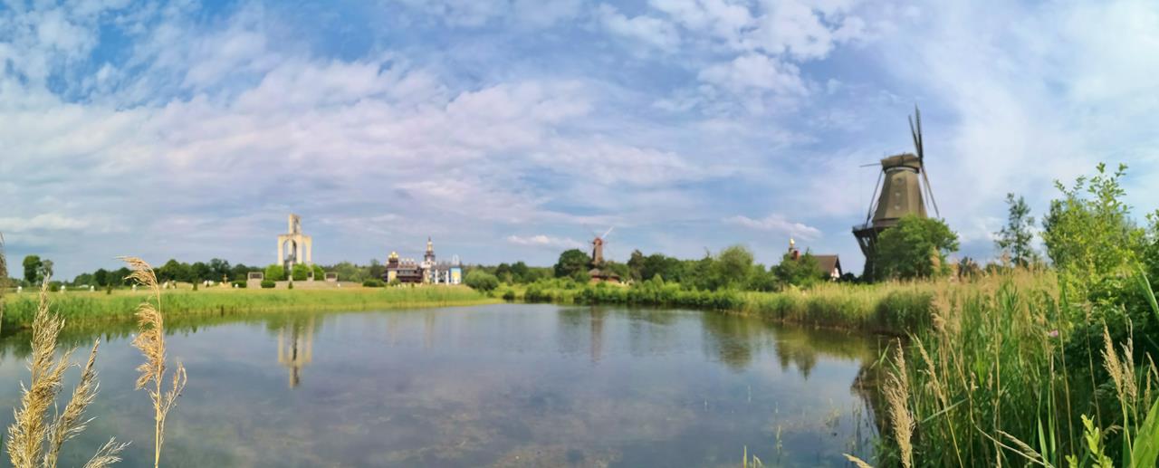 gifhorn_jun_2019_029_1280x517 ← Zurück Weiter → Panoramabild vom Mühlensee mit dem Glockenturm (links), dem Kulturinstit die Brücke (Mitte) und der ukrainischen Windmühle Natascha (rechts)