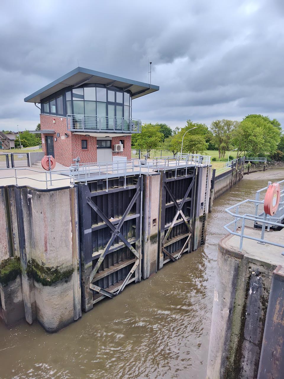 Lühe-Sperrwerk an der Mündung in die Elbe