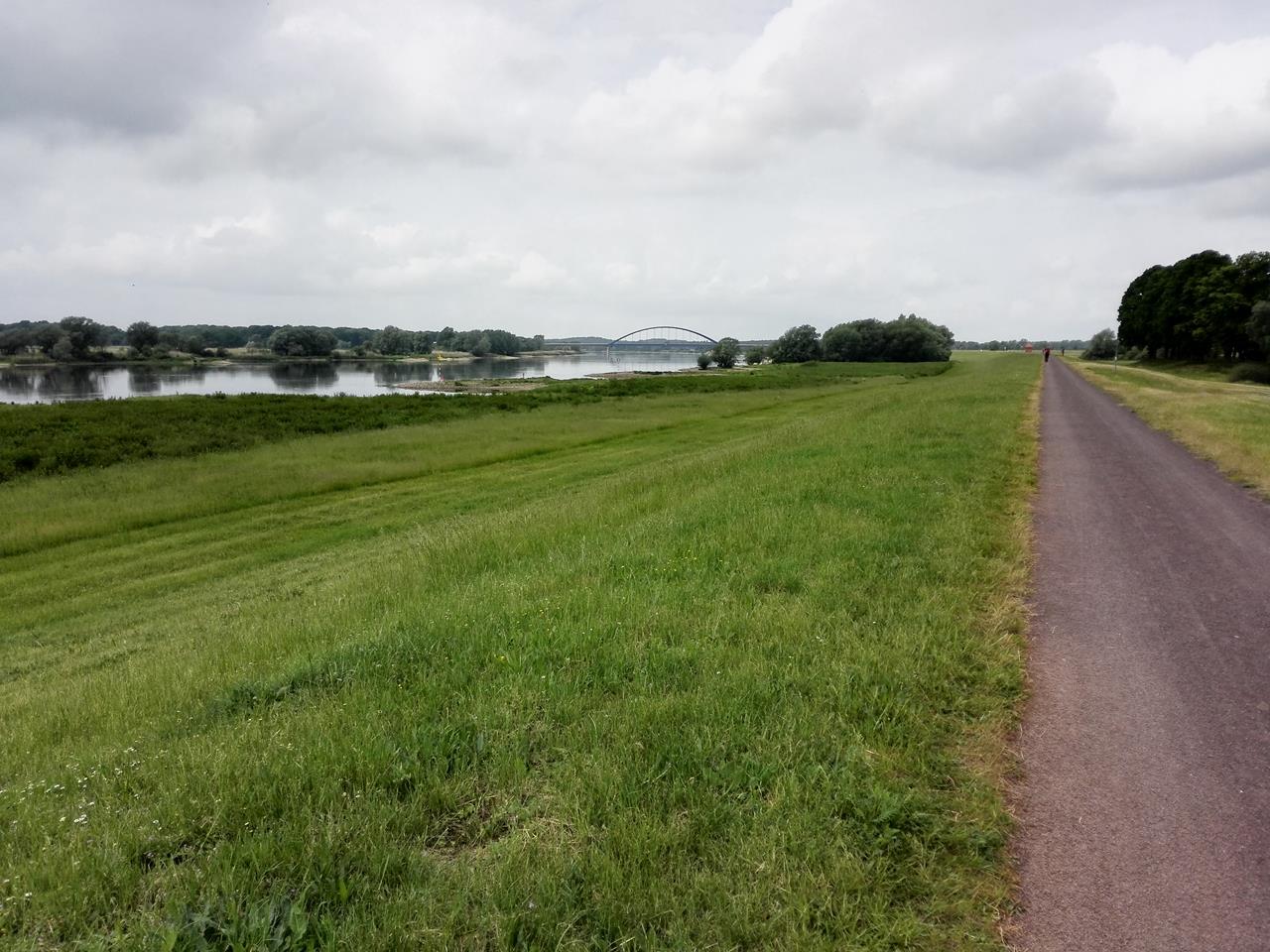 Bick stromaufwärts in Richtung der neuen Elbbrücke mit der Bundesstraße 191