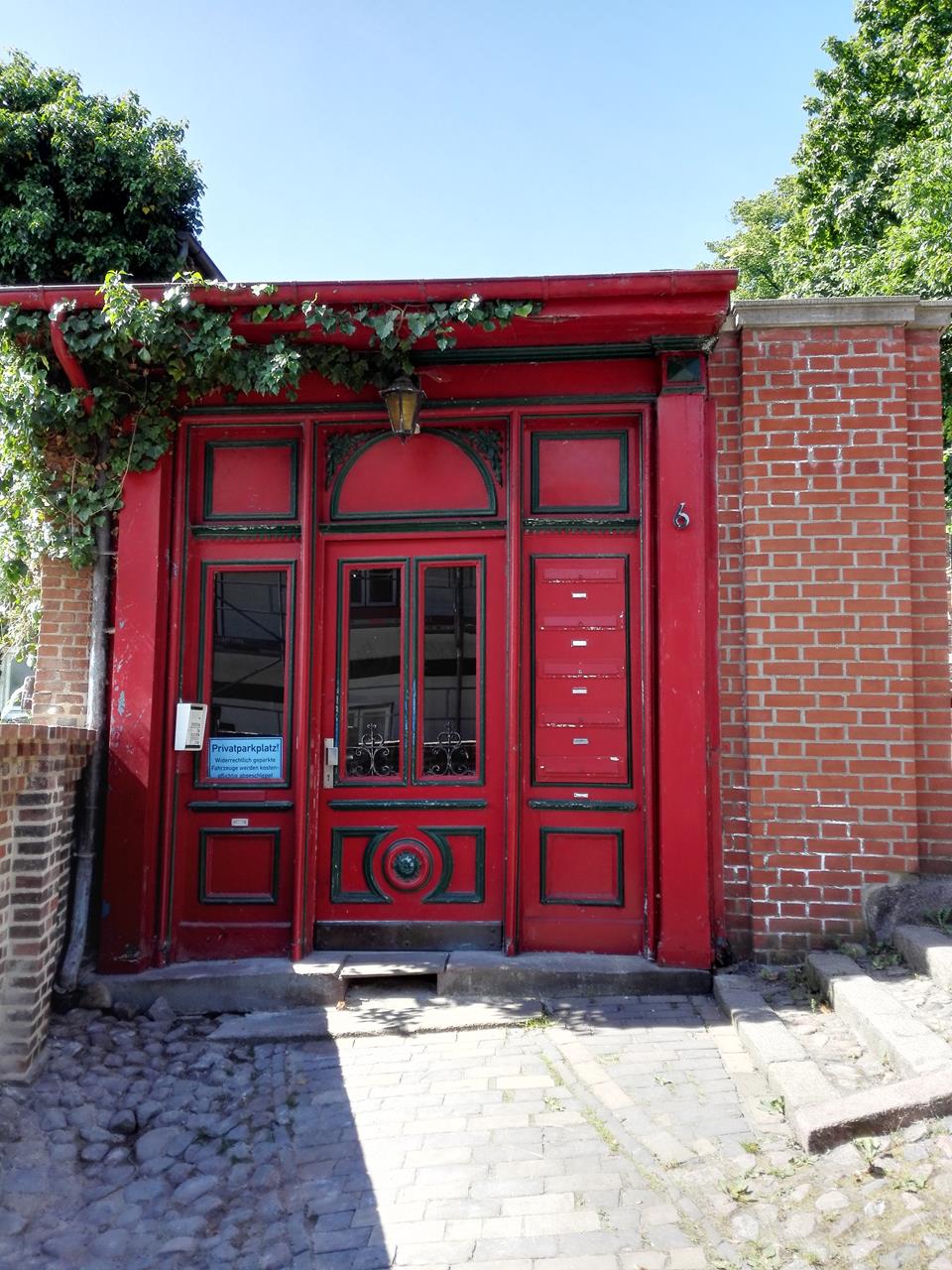 Hausportal im Stil einer englischen Telefonzelle