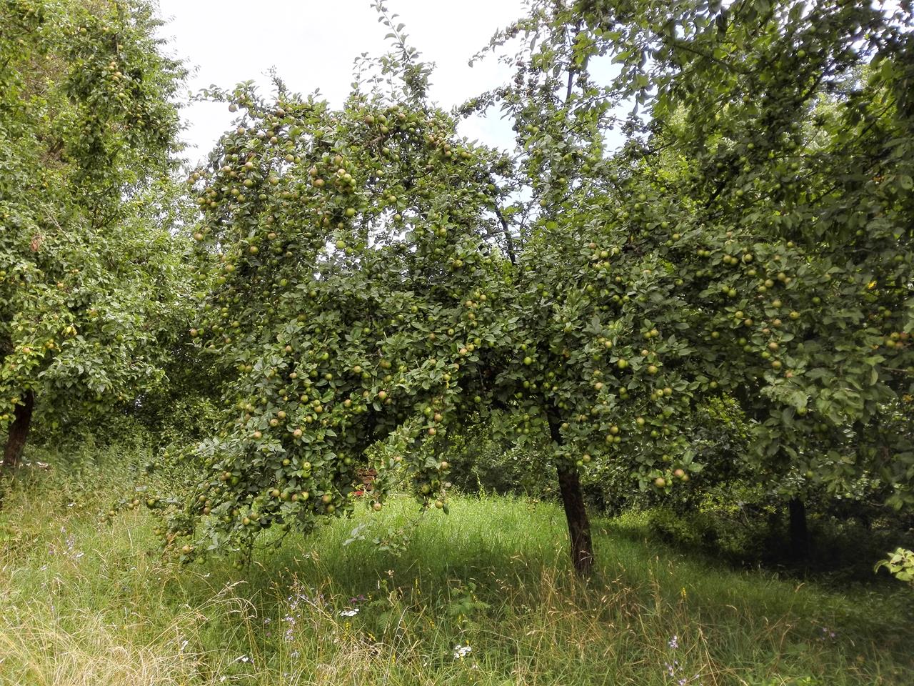 Wilder Apfelbaum mit vielen heranreifenden Früchten