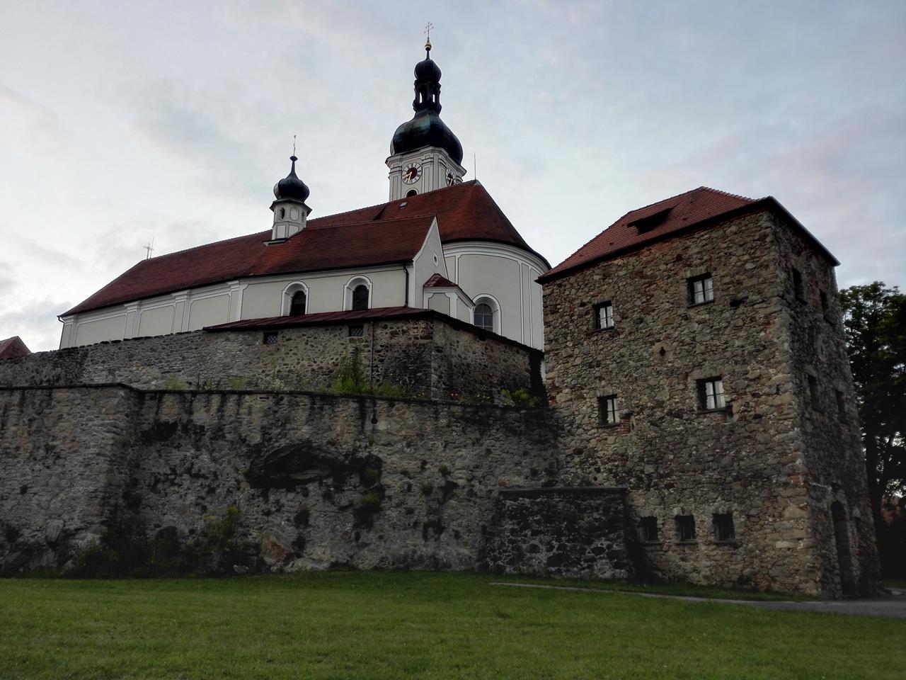 Die Kirche befindet sich im Mittelpunkt einer burgähnlichen Festungsanlage
