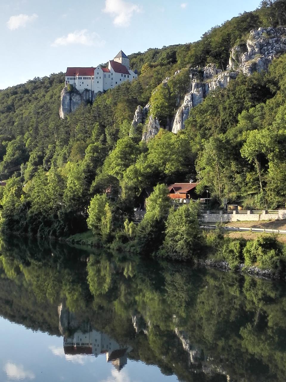 Burg Prunn spiegelt sich im Wasser der Altmühl