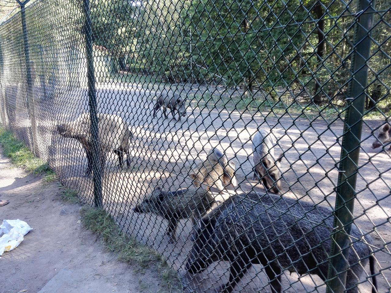 Wildschweine in einem großen Militärischen Sicherheitsbereich, der an den See grenzt. Sie haben sich daran gewöhnt, von Spaziergängern gefüttert zu werden.