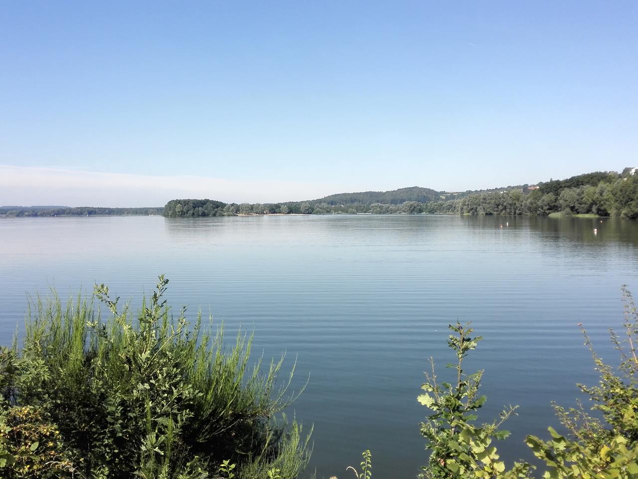 ← Zurück Weiter → Blick auf den Kleinen Brombachsee vom schmalen Damm, der den Großen vom Kleinen Brombachsee trennt