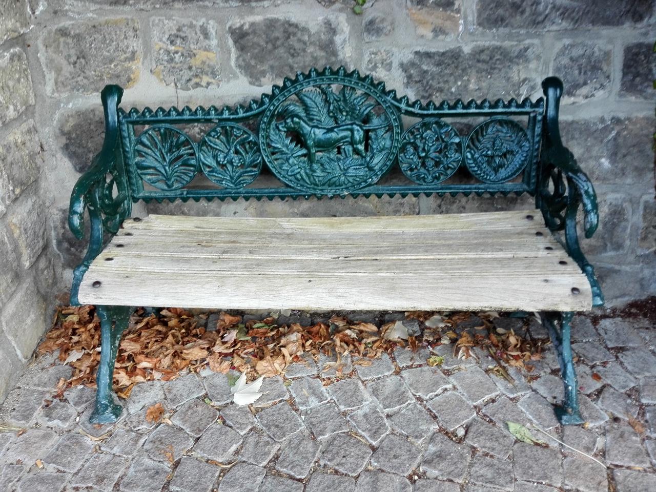 Eine Bank als Ehrung für den Gemeinen Jagdhund