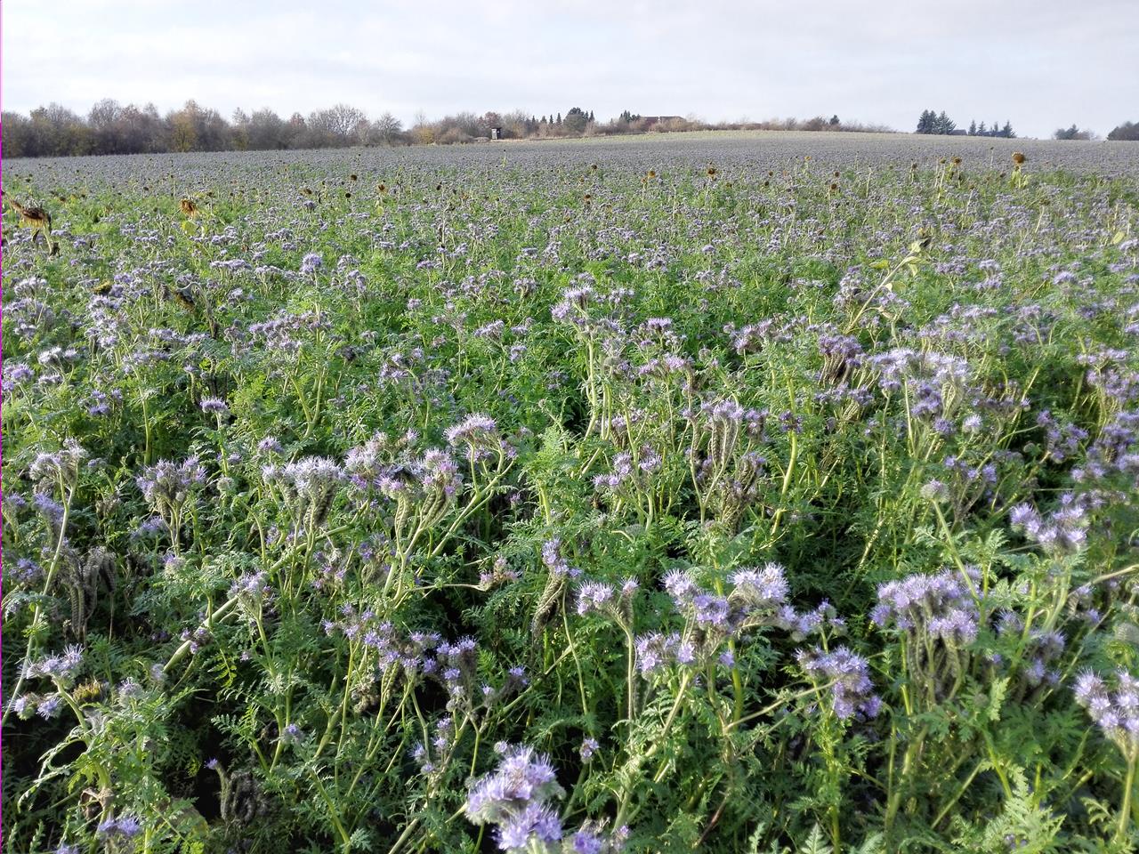 Blühende Zwischenfrucht auf den Feldern am Rand der Heide