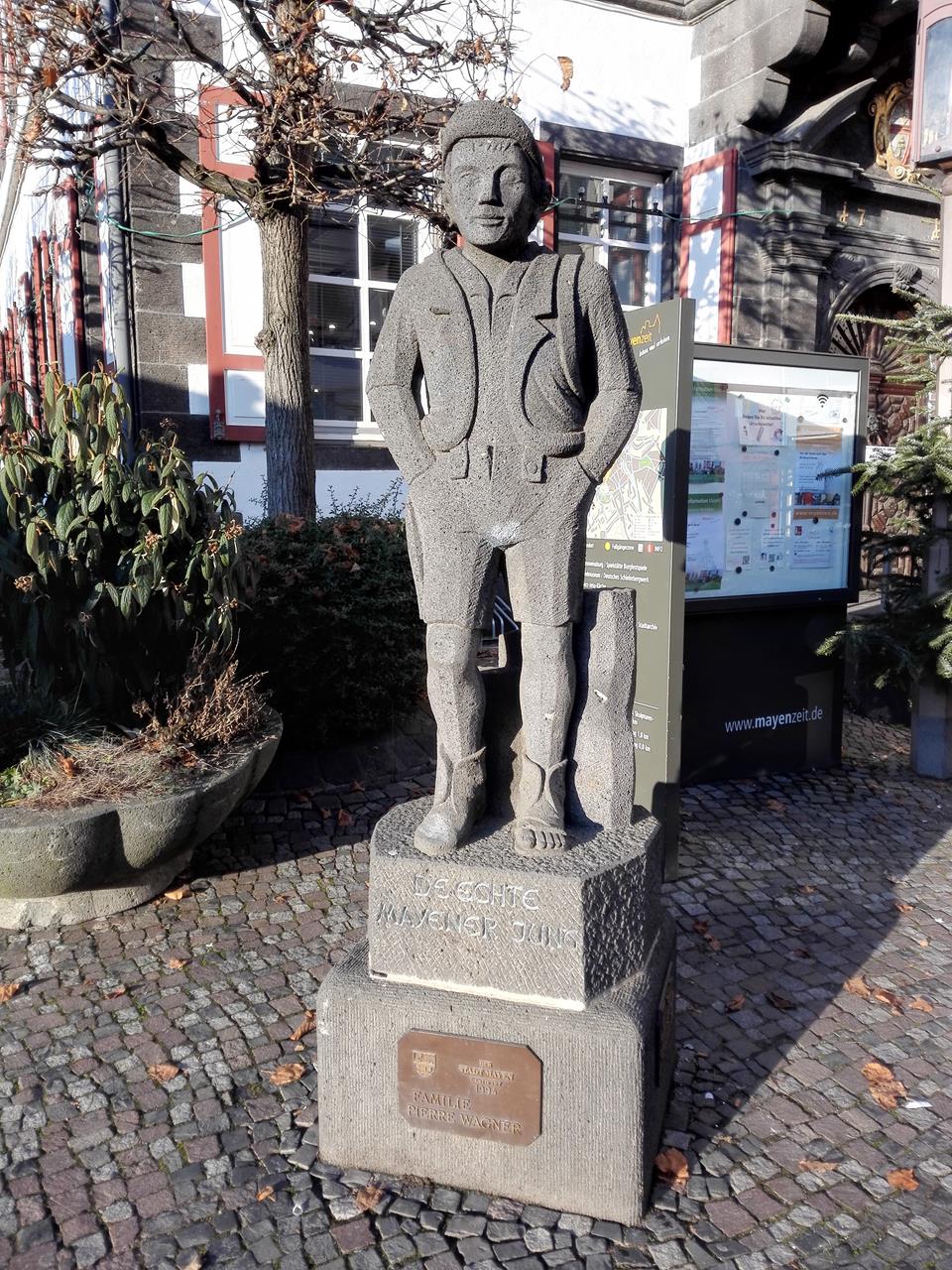 Skulptur des Mayener Jung vor dem Rathaus