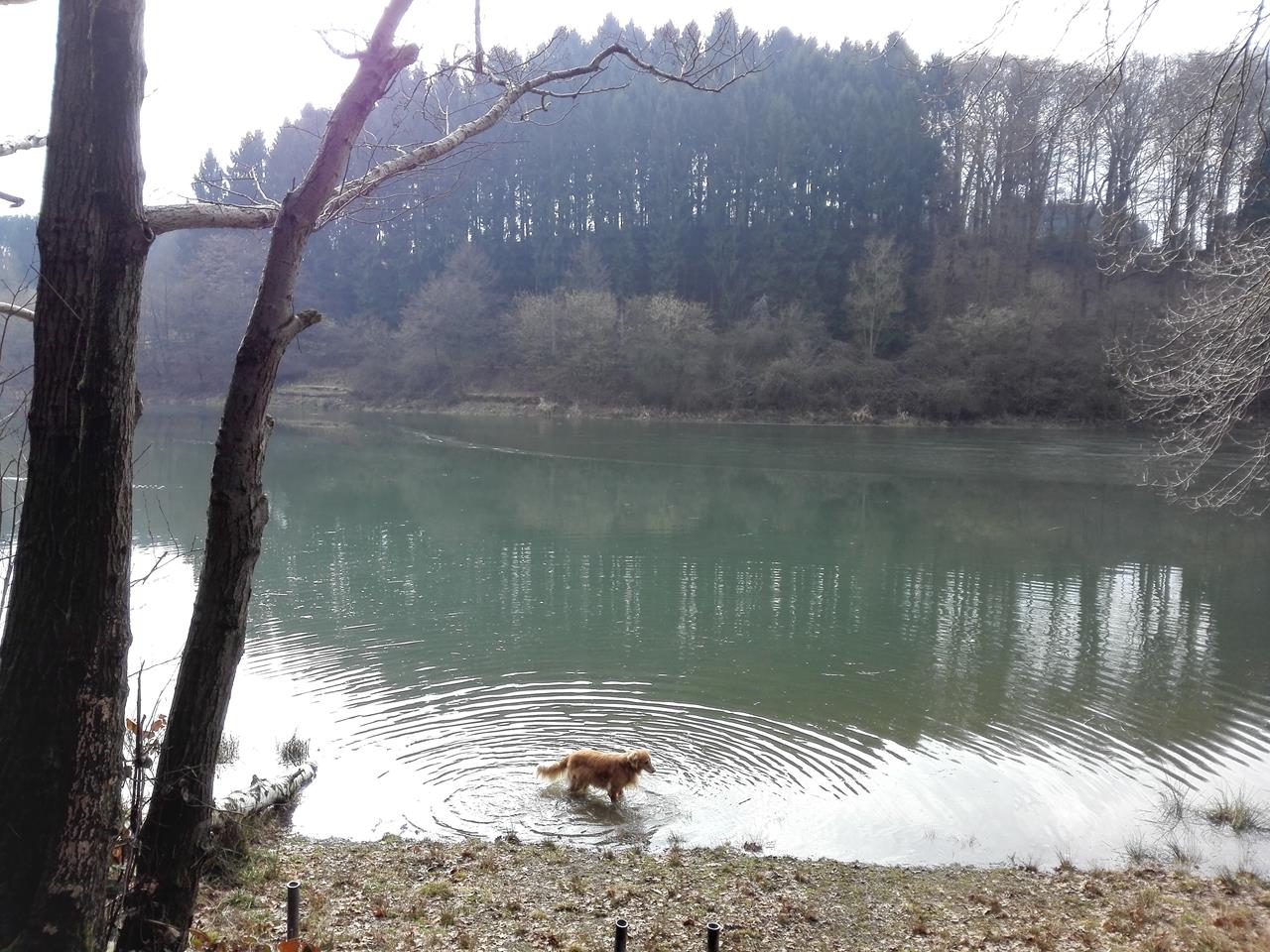 Bellis nimmt einen Schluck aus der Diepentalsperre