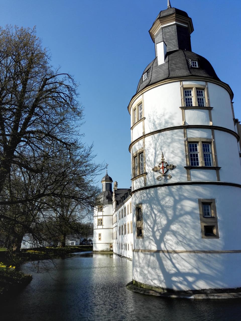 Das Schloss ist von einem Wassergraben umgeben