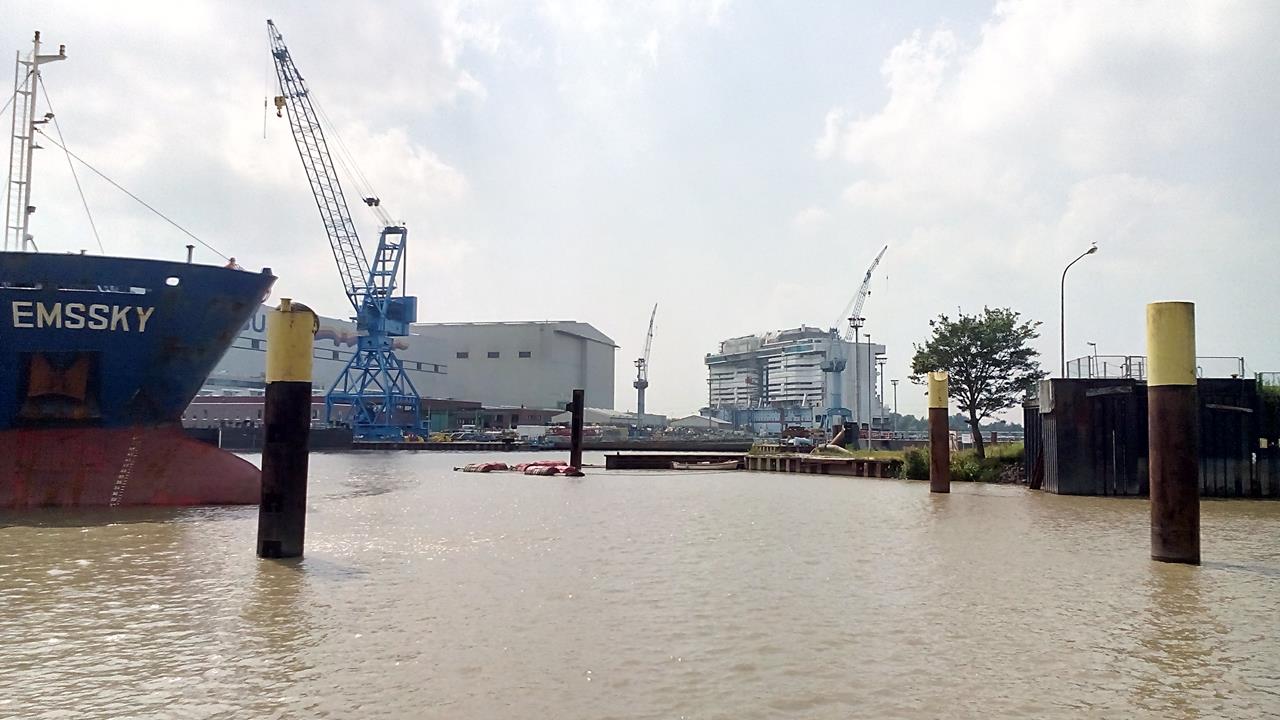 Blick auf die Meyer Werft mit dem weltweit größten überdachten Baudock
