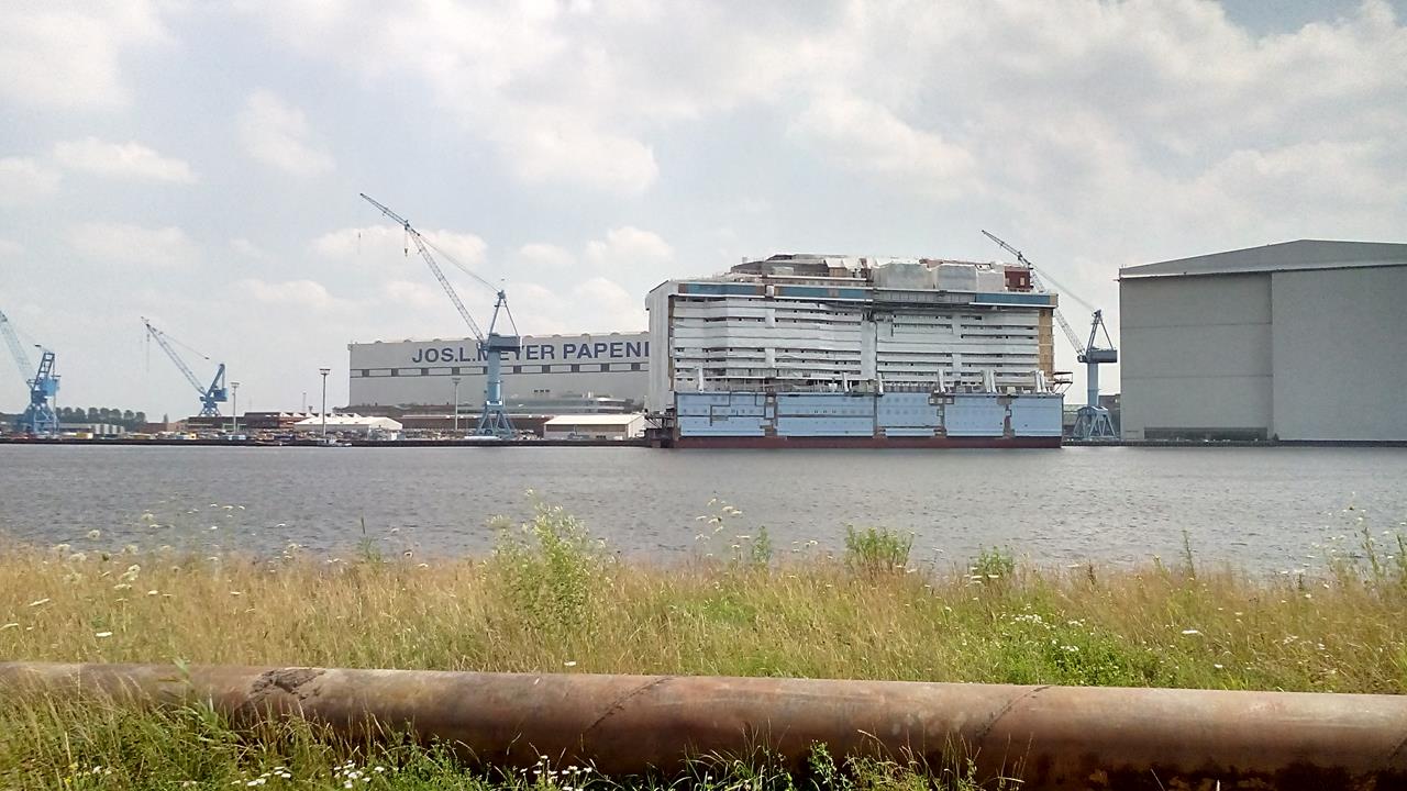 Teilsegment eines Kreuzfahrtschiffes im Bau