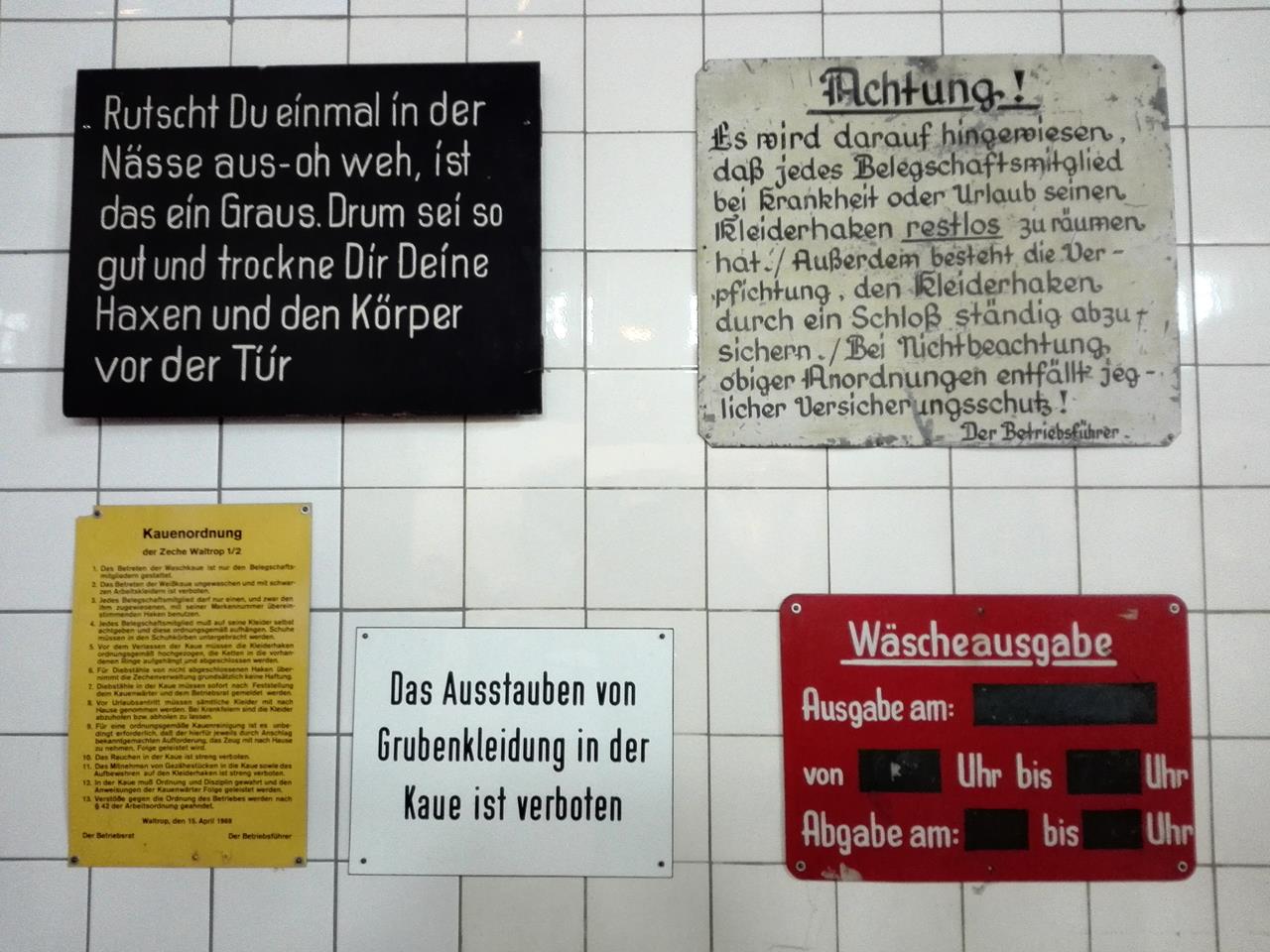 Hinweisschilder für die Bergleute