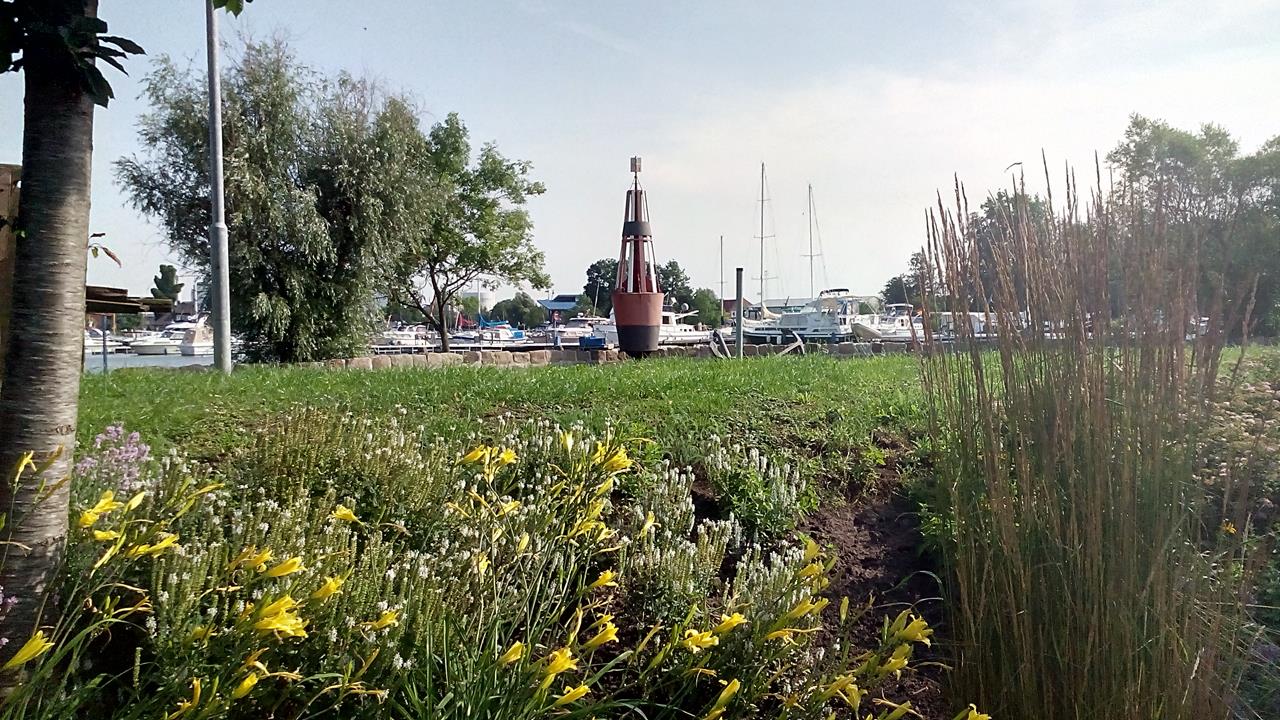 Blick vom Wohnmobil in den Yachthafen von Weener