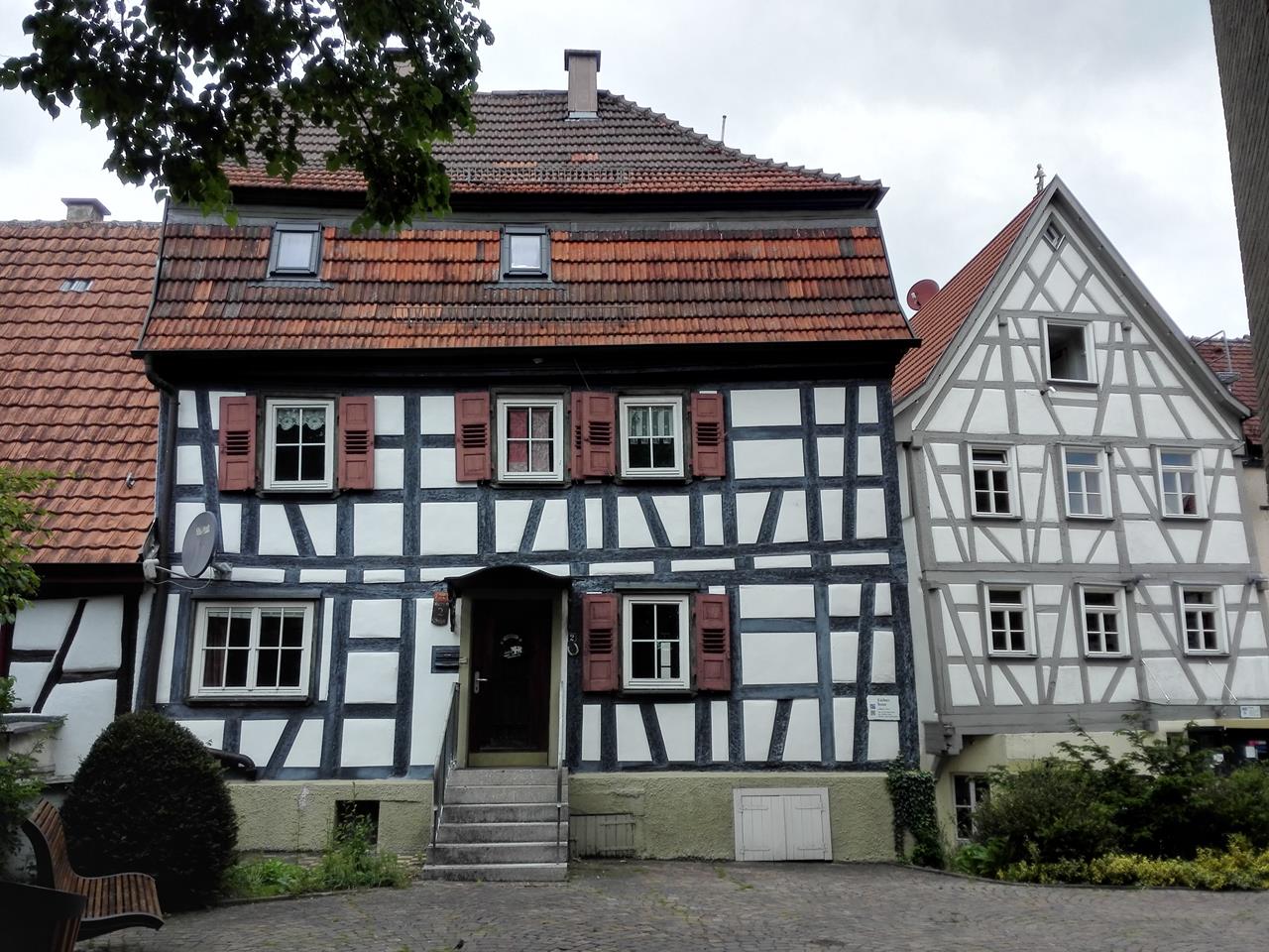 Gut erhaltene Fachwerkhäuser neben der Kirche