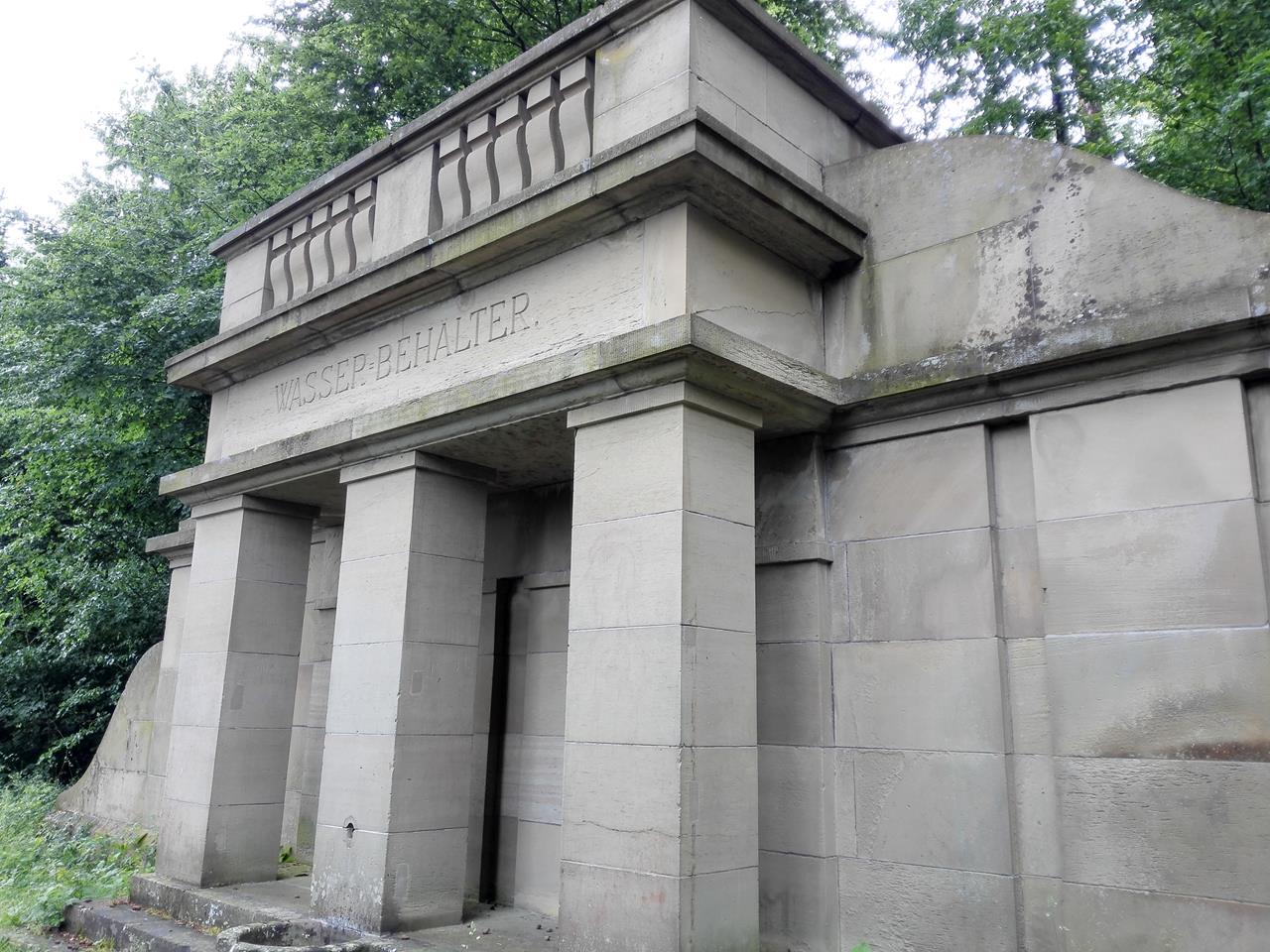 Neo-klassizistische Front eines Wasserspeichers im Wald