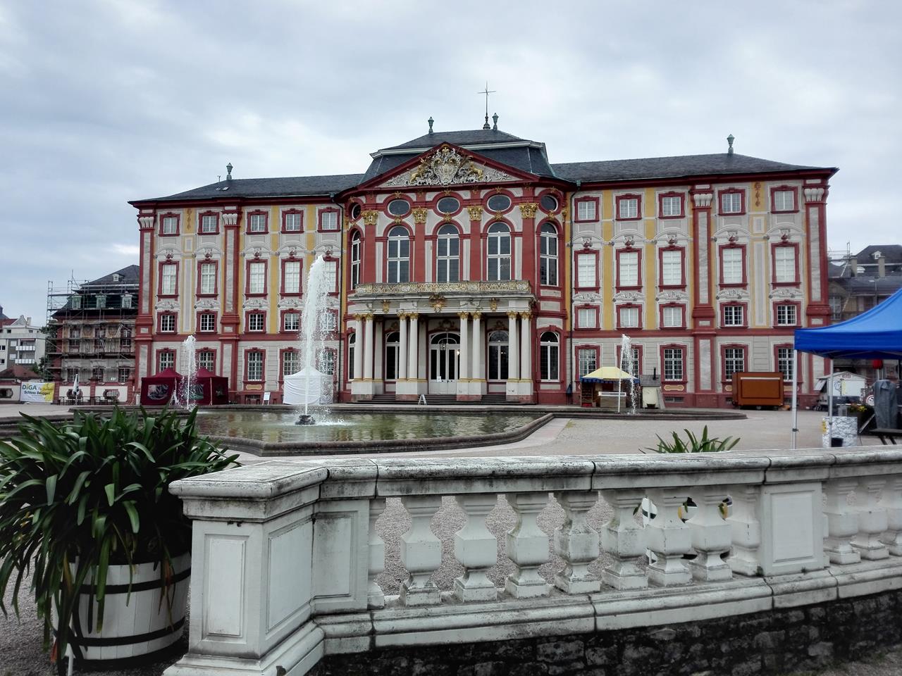 Rückseite des Schlosses mit Wasserfontäne