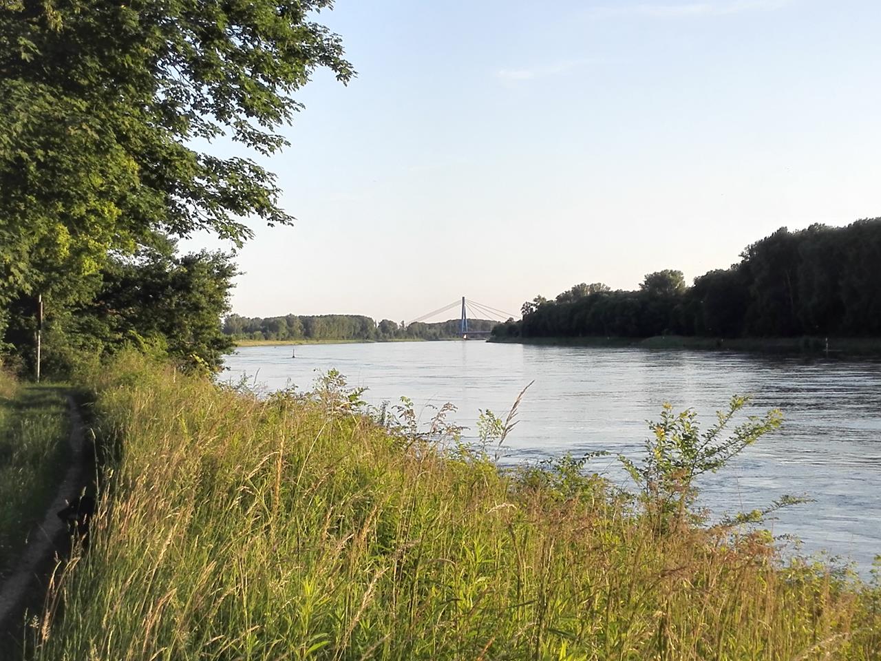 In der Ferne ist die Autobahnbrücke der A61 über den Rhein zu sehen