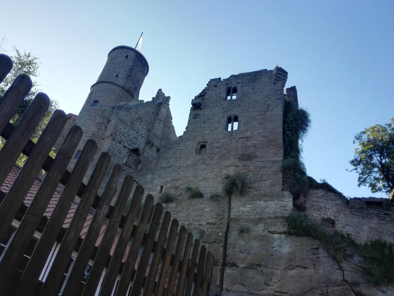 Wir stehen unterhalb der Burgruine und kommen leider nicht hinein