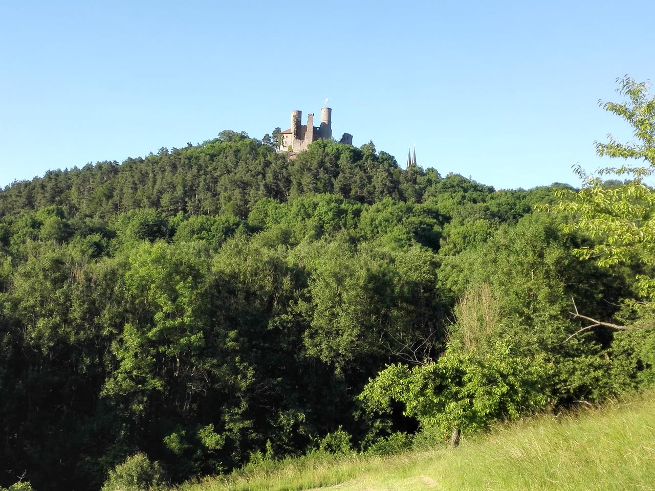 Blick aus der Ferne auf die Burgruine Hanstein