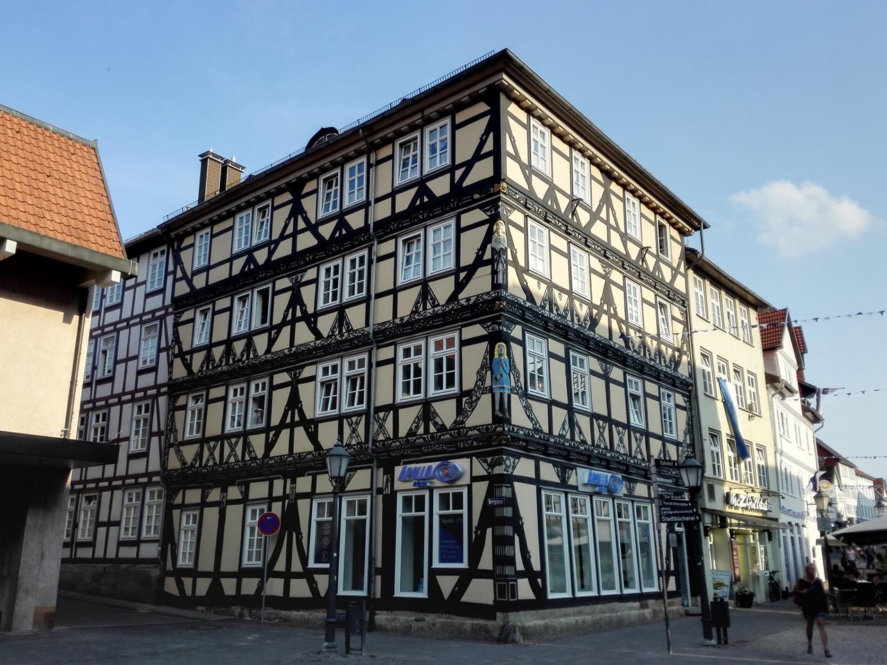 Prächtiges Fachwerkhaus am Anfang der Haupteinkaufsstraße gegenüber der Burg