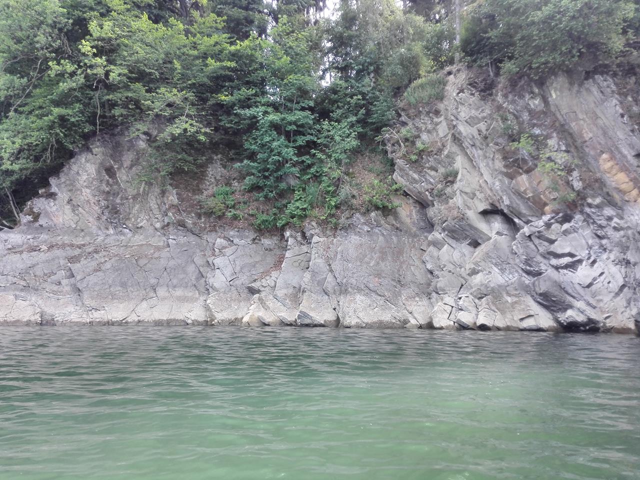 ← Zurück Weiter → Der See führt zurzeit wenig Wasser. Am Felsgestein haben die unterschiedlichen Wasserstände ihre Spuren hinterlassen