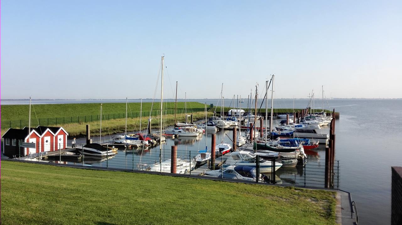 Der kleine Yachthafen an der Schleuse vom Dangaster Tief in den Jadebusen