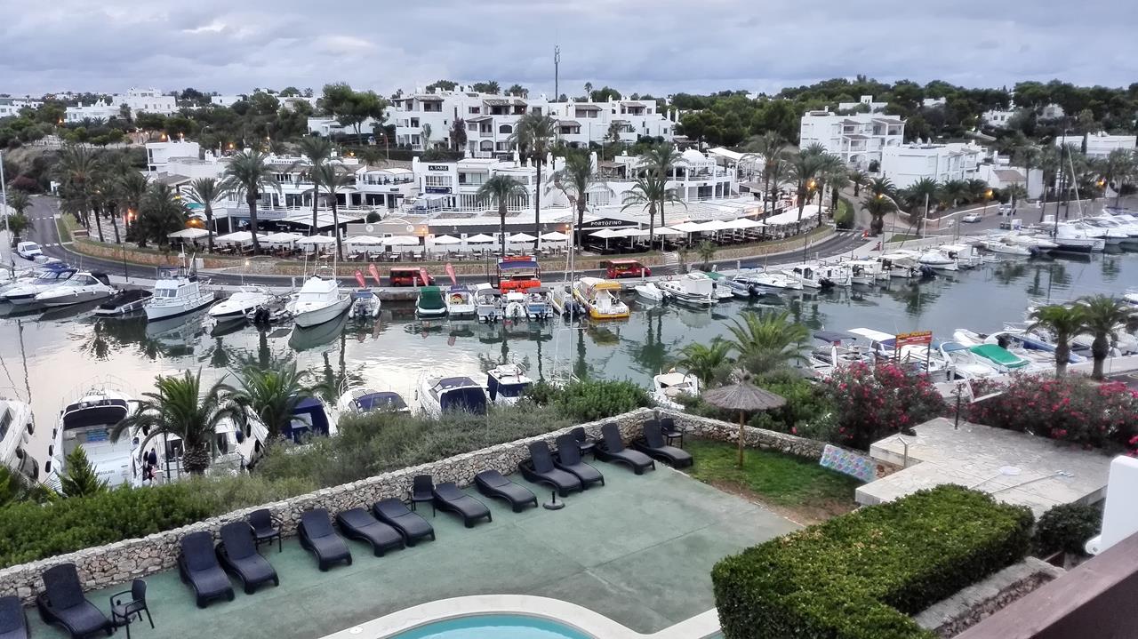Blick über den Pool zur Hafenmeile von Cala d“Or