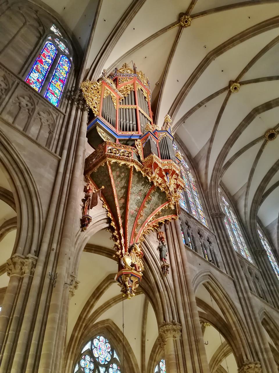 Die Schwalbennestorgel hängt hoch oben in der Fassade