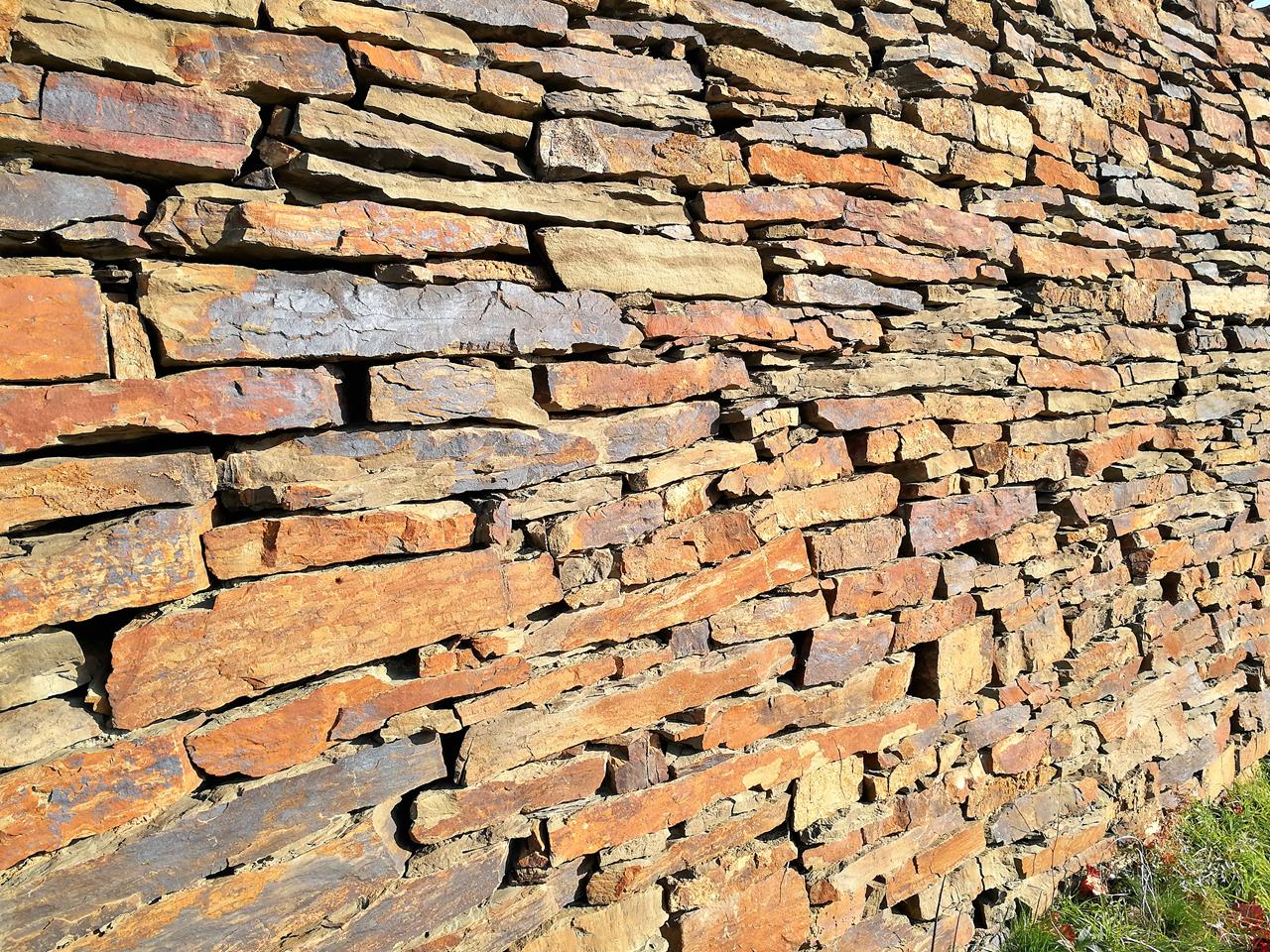 Trockenmauer aus Schiefer an einem Weinberg