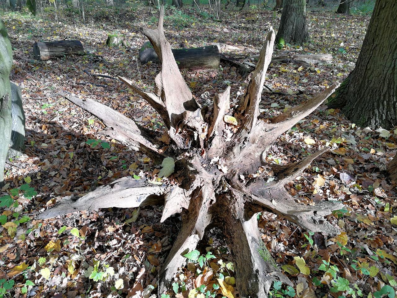 Verrottender Baumstumpf mit Wurzel