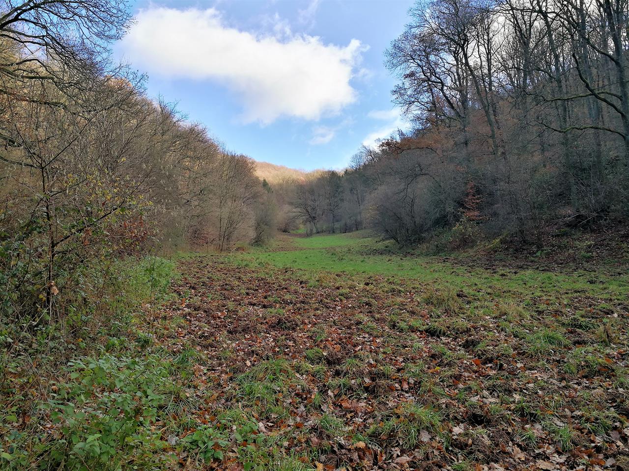 Von Wildschweinen zerwühlte Lichtung im Wald