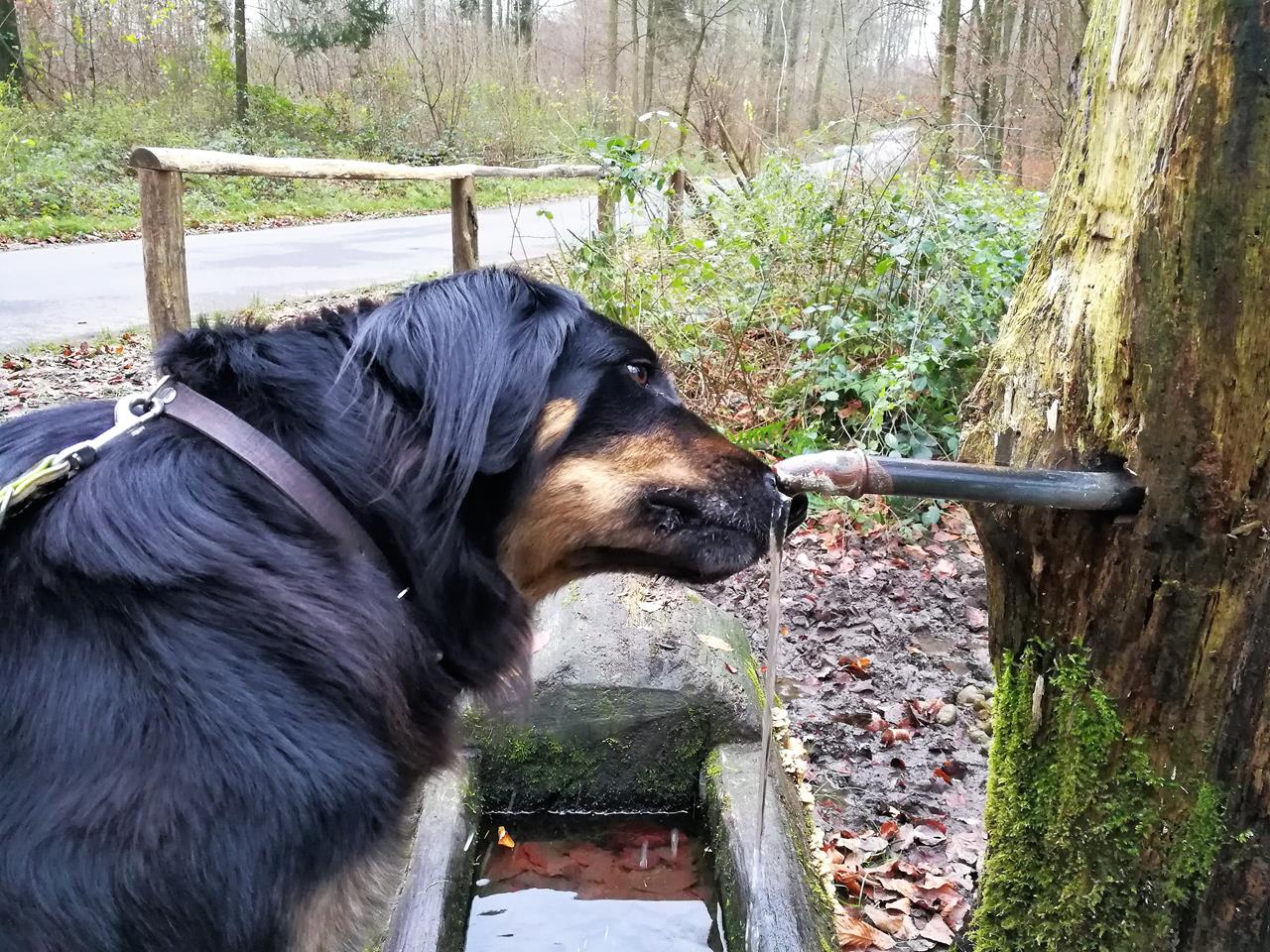 Doxi hat einen Brunnen im Wald entdeckt und schleckt fleißig