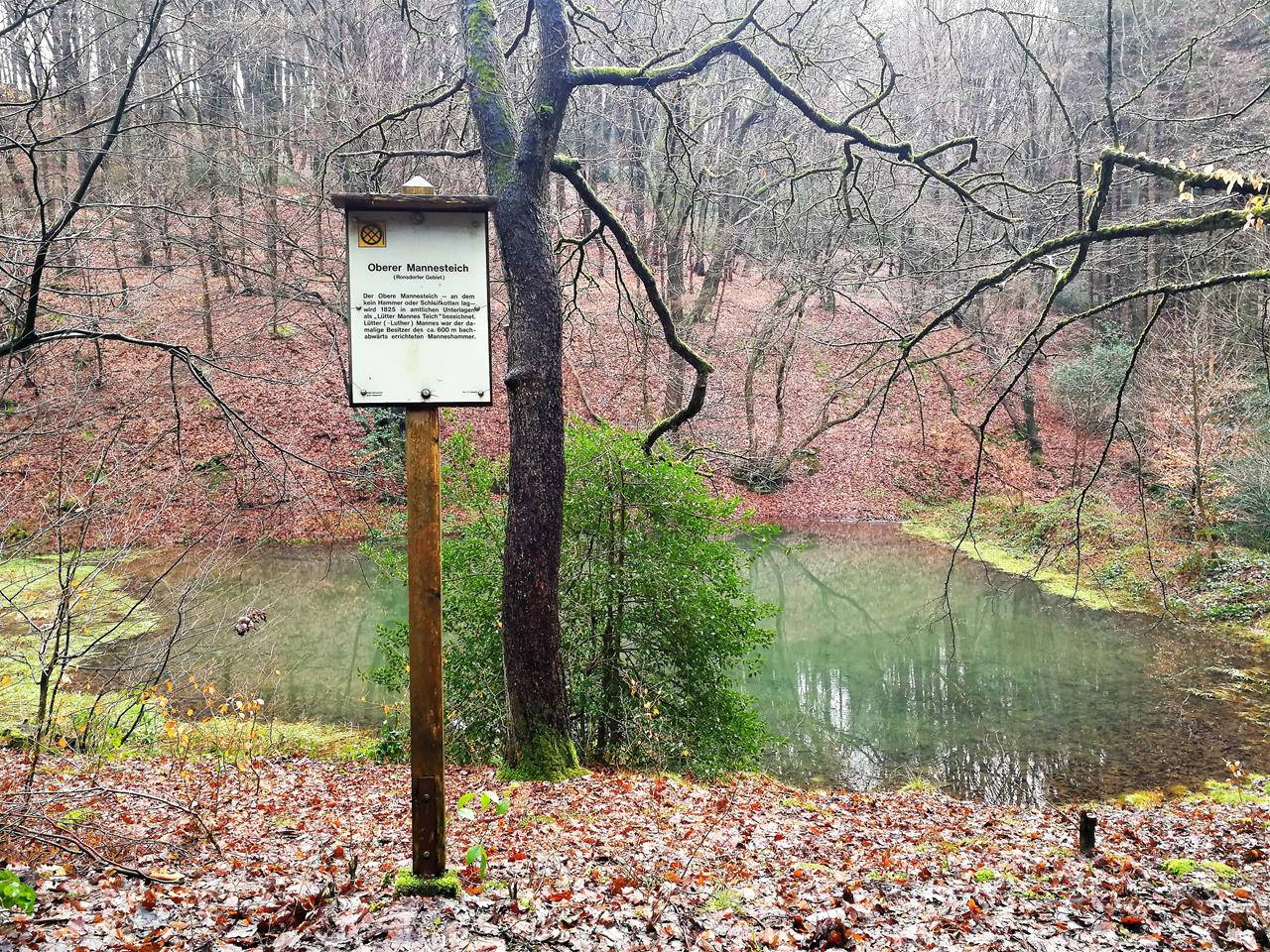 Infotafel an der Siepe eines ehemaligen Schleifkottens