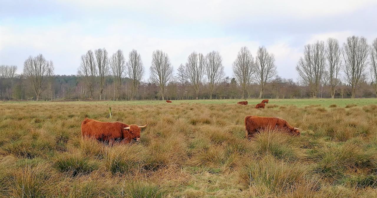 Schottische Hochlandrinder auf den Heideflächen