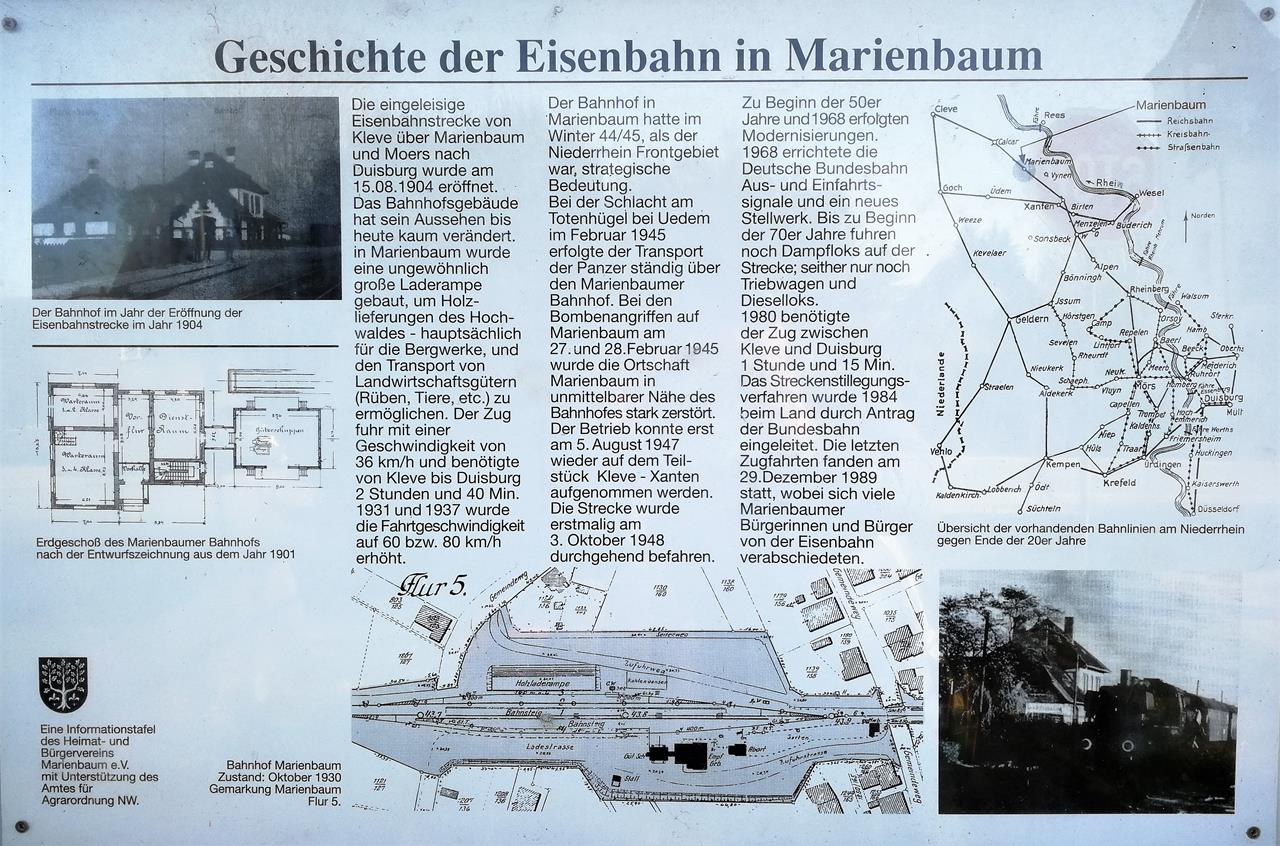 Infotafel zur Bahngeschichte in Marienbaum