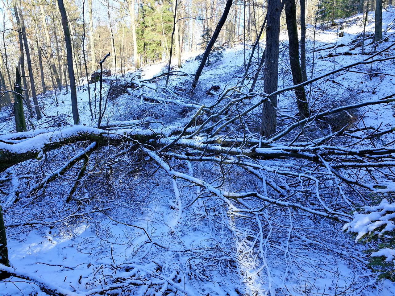 ← Zurück Weiter → Auch hier sind beim letzten Wintersturm viele Bäume umgestürzt und versperren nun teilweise die Waldwege