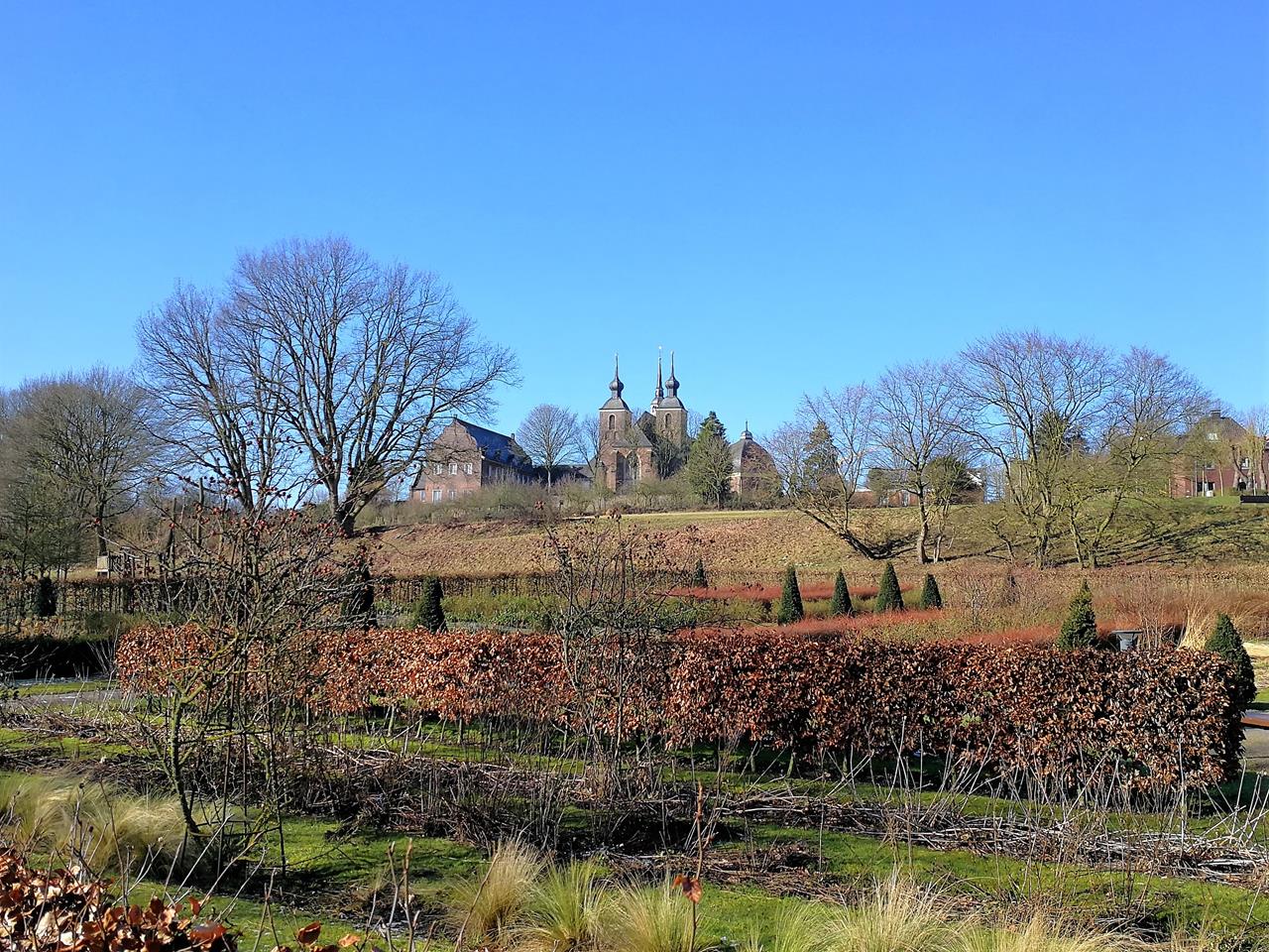 Blick hinauf zum Kamper Berg mit dem Kloster