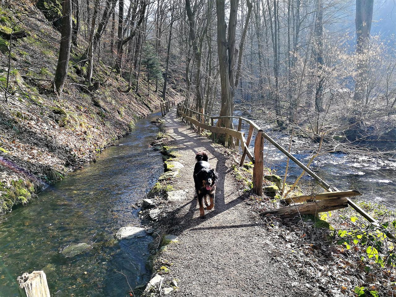 Links der alte Mühlengraben der Mestrenger Mühle, rechts die Kall